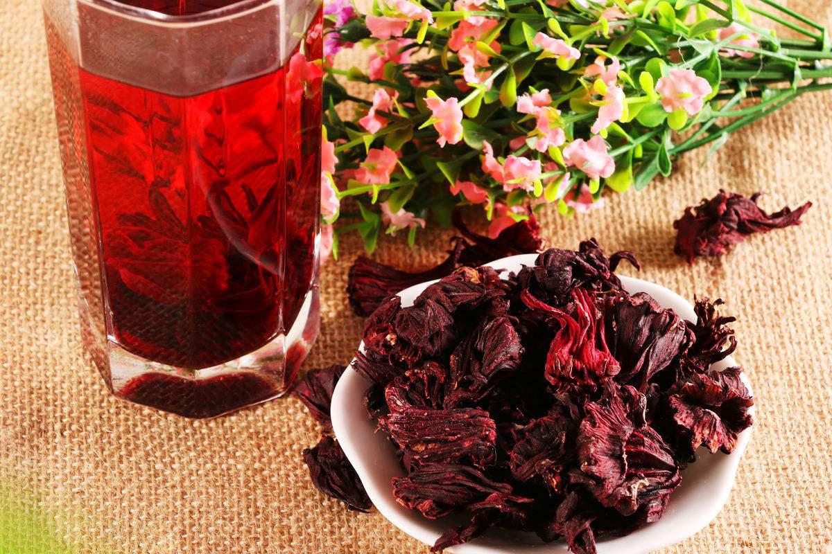 玫瑰茄干燥花瓣1茶匙,红糖或蜂蜜少许。