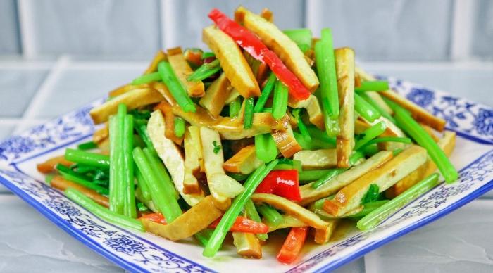 芹菜500克,豆腐干100克。适用于高脂血合并高血压的病人。...