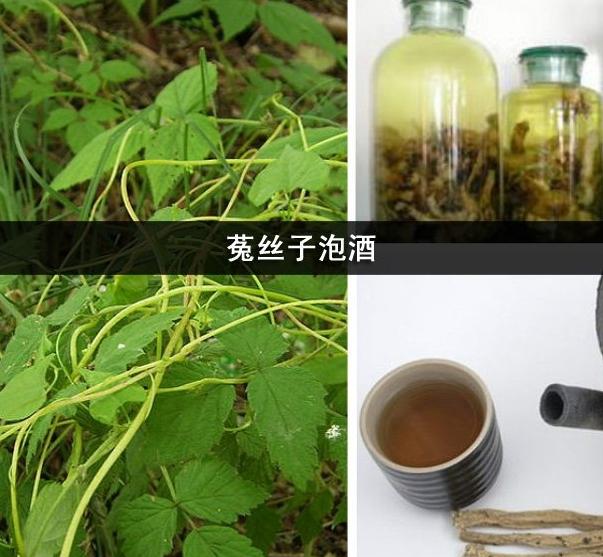 菟丝子、山萸肉各50克,芡实30克,低度白酒500毫升。主治补肾,养肝,固精。适用于腰膝酸痛、遗精、糖尿病消渴、尿有余...