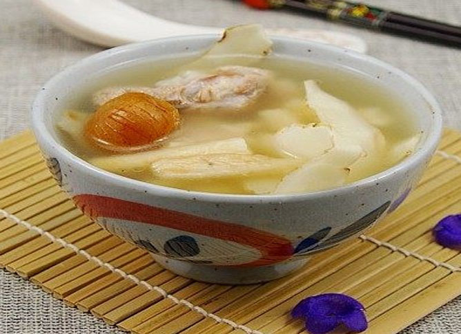 1、将玉竹洗净切片,用纱布包好 2、与洗净切成块的瘦猪肉一同放人砂锅内,加清水适量煎煮 3、熟后加精盐及味精调味即成。