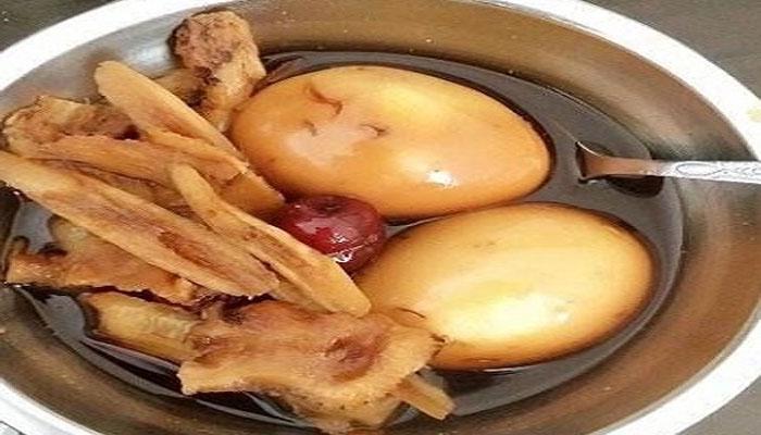 1、先将黄芪与桂枝加水100克煎煮 15分钟,滤取药汁 2、再将鸡蛋打人药汁中,煮至鸡蛋熟透。