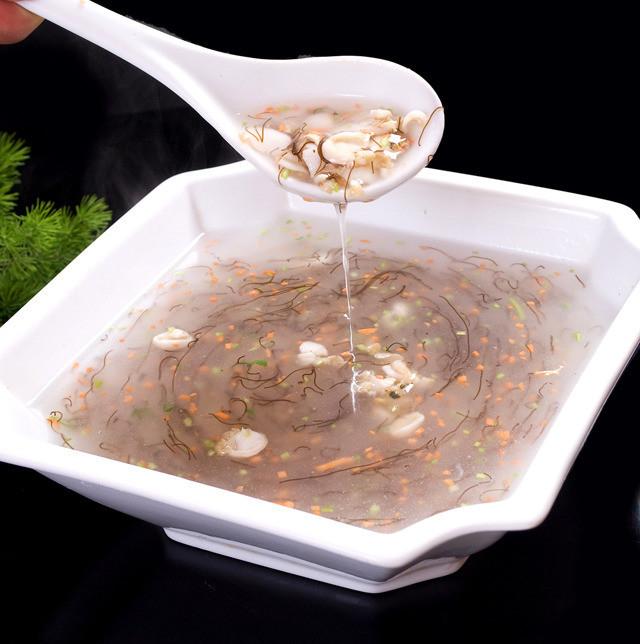 发菜、鸡肝各100克,枸杞子25克,鲜菜心50克,清汤800克,精盐3克,味精1克,水淀粉8克。