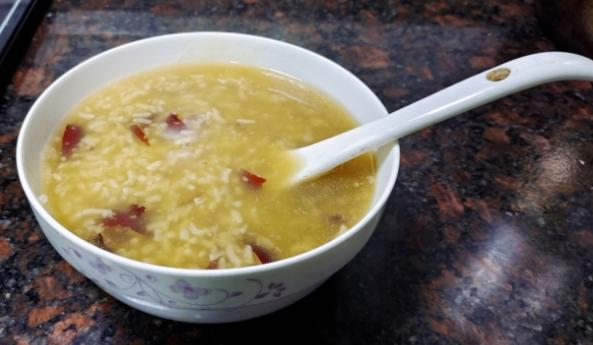 ① 先将黄豆、大枣、糯米用温水泡半小时 ② 糯米入锅内加适量的清水,用大火烧开转文火 ③ 然后加入黄豆、核桃、大枣煮熟即可