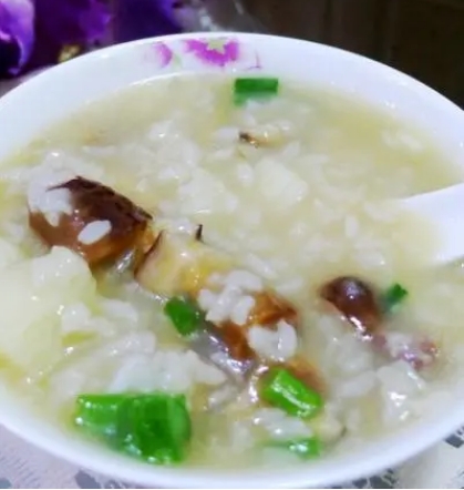 ① 先将蘑菇洗净,切成薄片,粳米淘洗干净 ② 山药用清水泡透,洗净后切成薄片 ③ 将粳米、蘑菇、山药一同放人锅内,加水适量,置大火上烧沸,再用小火煮为粥即可