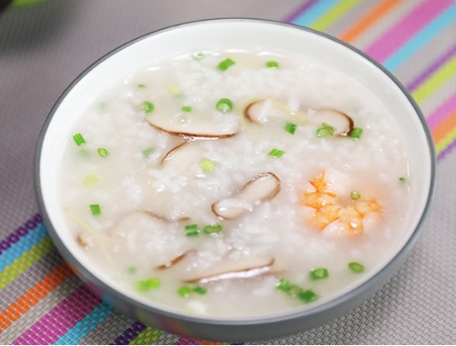 ① 先将水发香菇洗净,切成小块 ② 松子仁、粳米洗净,备用 ③ 锅内加水适量,放入松子仁、粳米煮粥,至五成熟时加入香菇块,再煮至粥熟即成