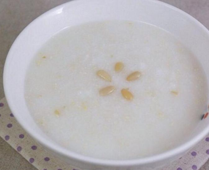 先将松子仁研碎,粳米淘洗干净,共置锅内,加入适量清水,熬煮成粥,加入白糖调匀即可食用。